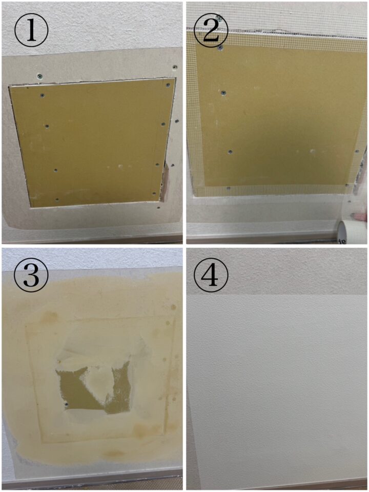 写真は補修前→パテ→クロス貼りの流れをまとめております✌️